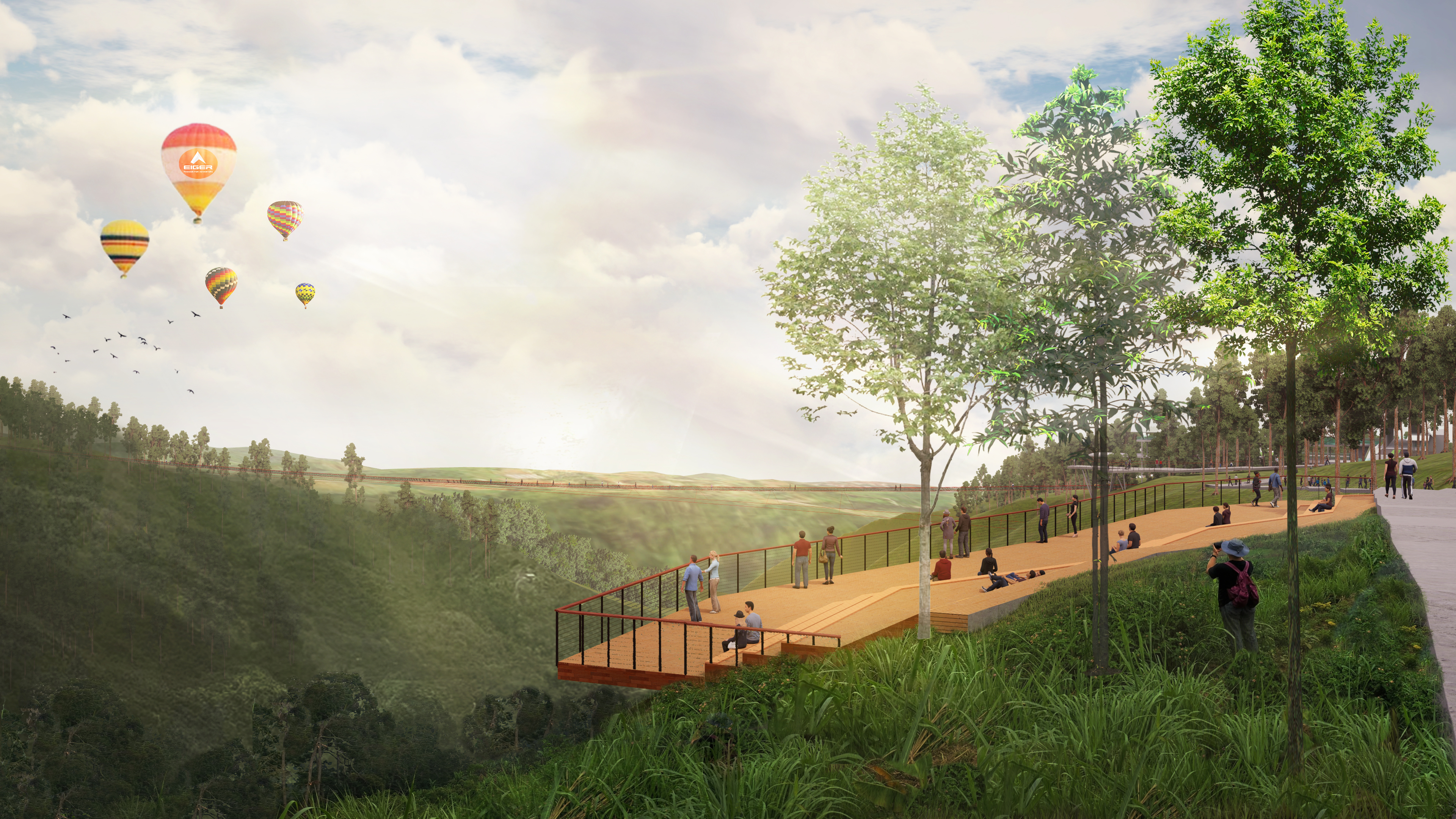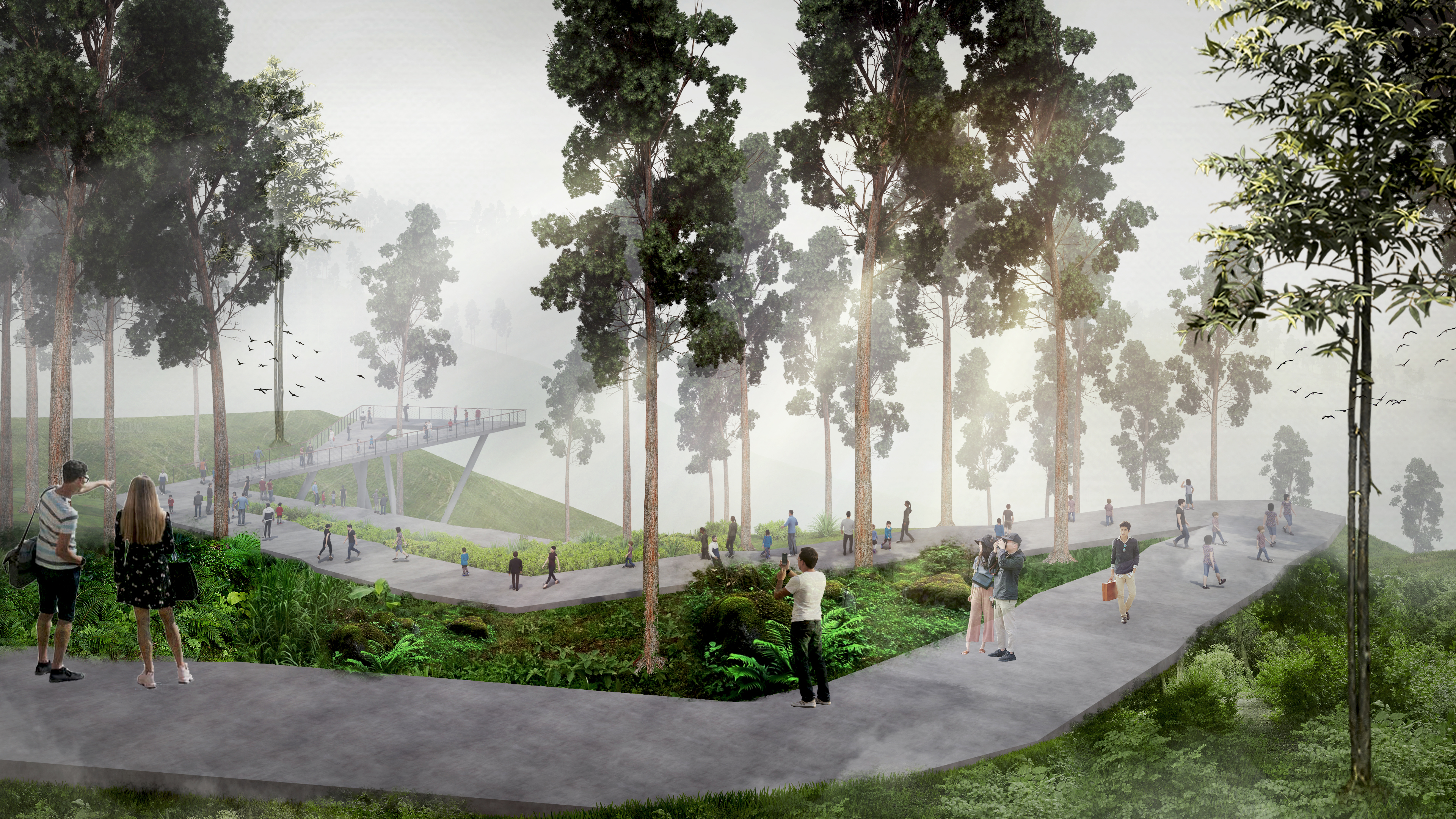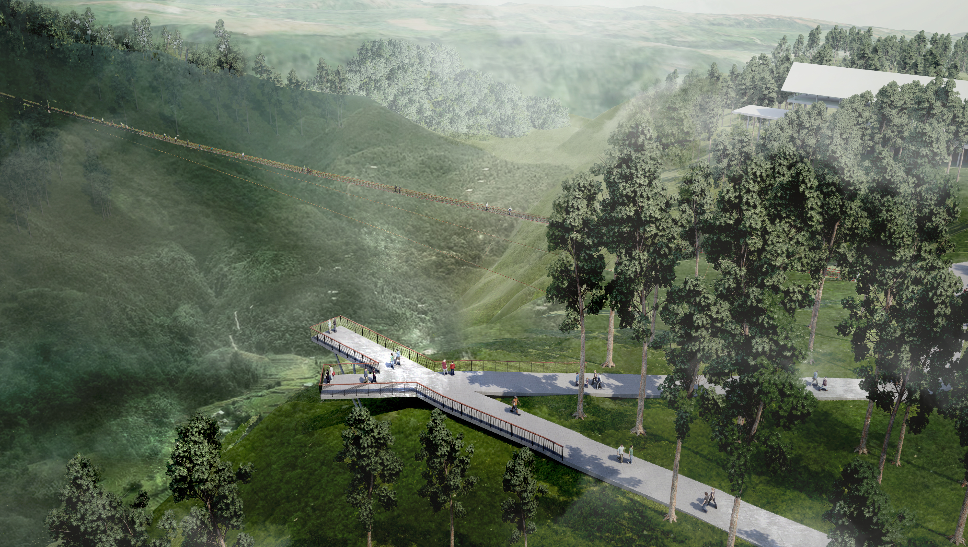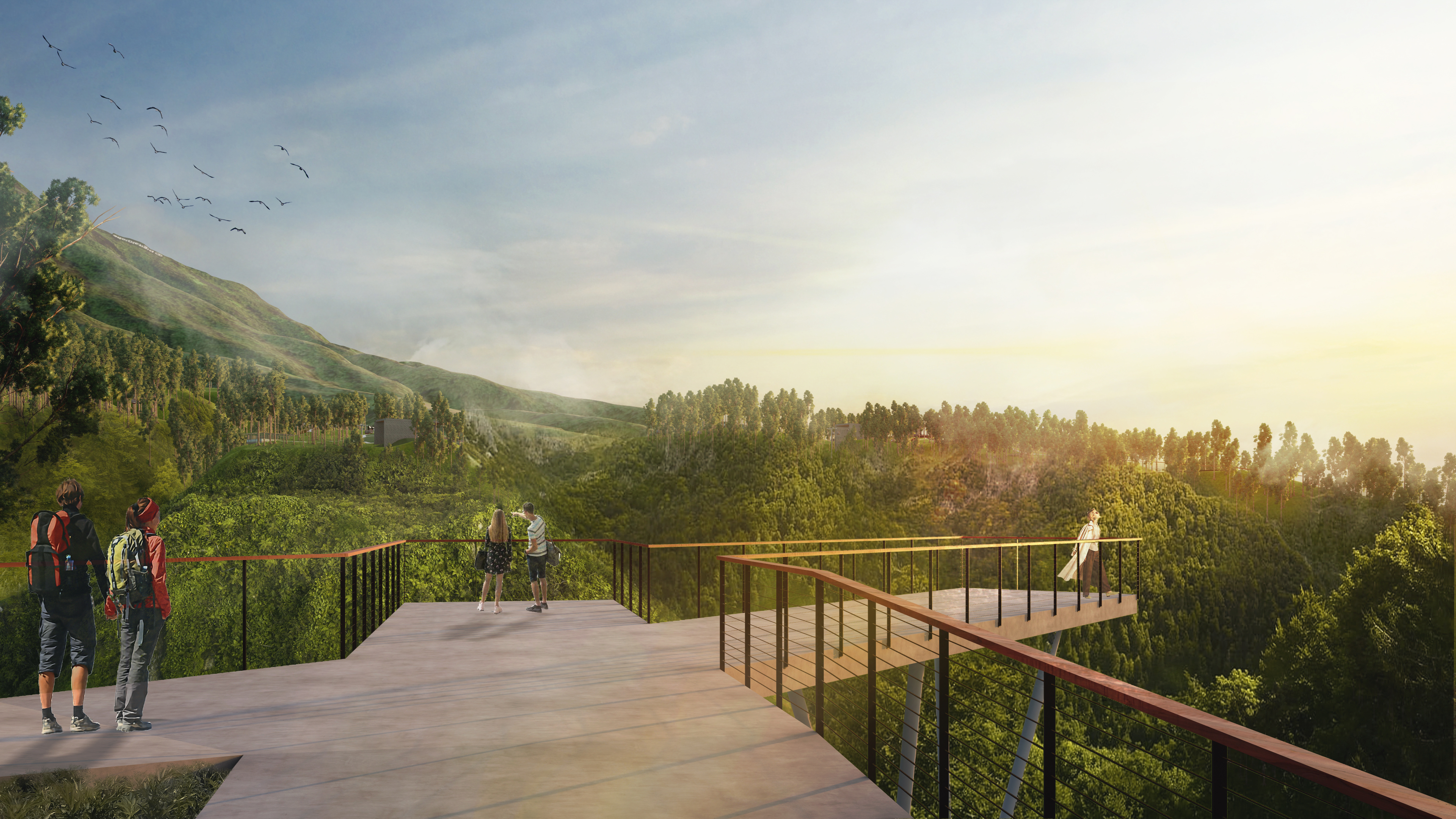 Pangrango foothills will features cable cars and 530 metre suspension bridge set as the longest suspension bridge in the world. Other facilities includes tropical adventure program like Forest Adventure, Cultural Walk, Adventure Playground, Wellness Sanctuary, Eco Resort, Educational, Hiking and Camping programs. The master plan adopt ecology, integration, green, enjoyment and recreational principle in developing the 360ha site. The first phase of development is set to be operational by 2023.