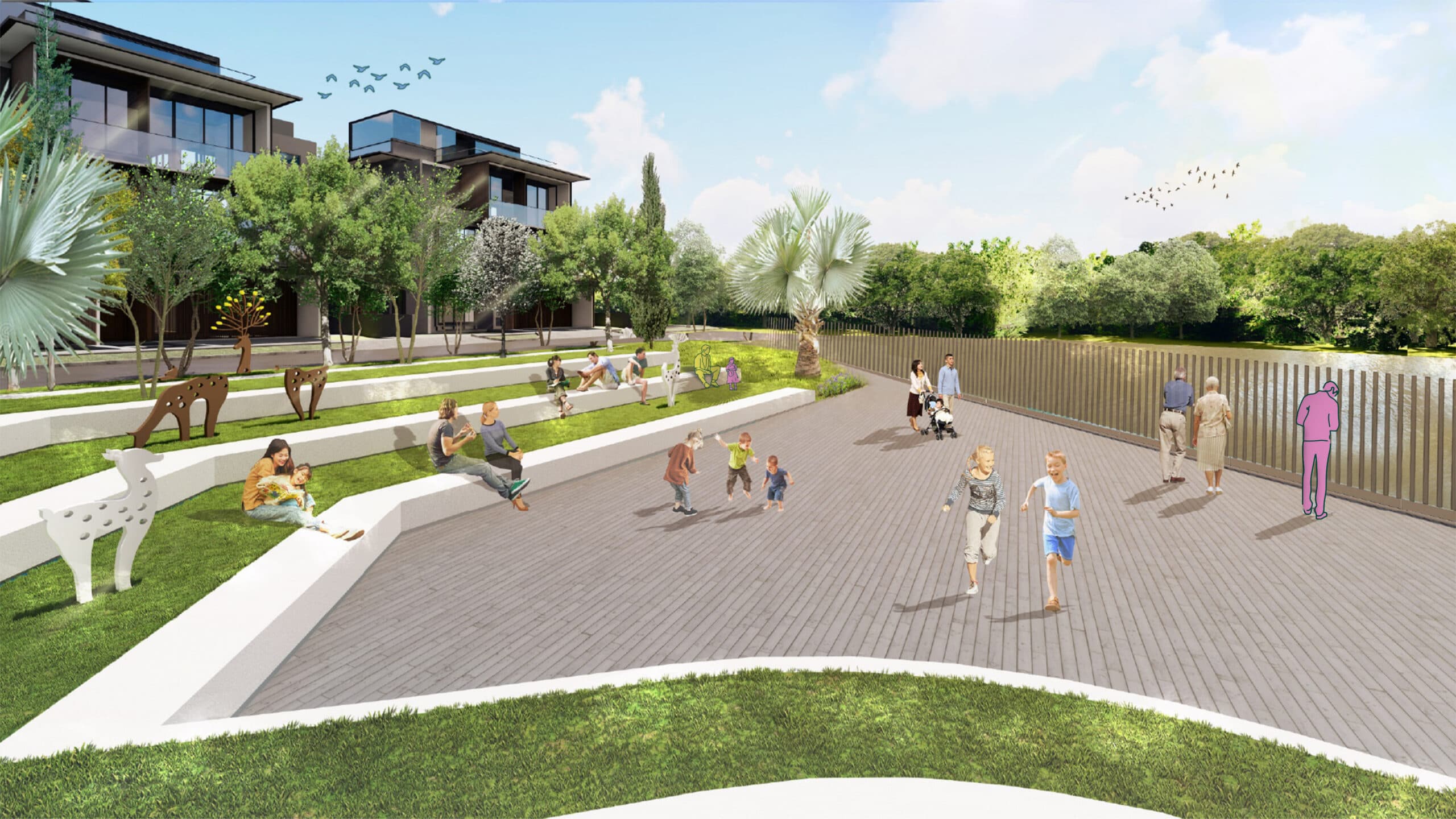 The riverside location offered both beauty and complexity, a need to balance ecological resilience with livable comfort. By interpreting the seasons through planting palettes and spatial atmosphere, the landscape transforms an ordinary residential environment into one that evolves with time, fostering sensory engagement and community connection.