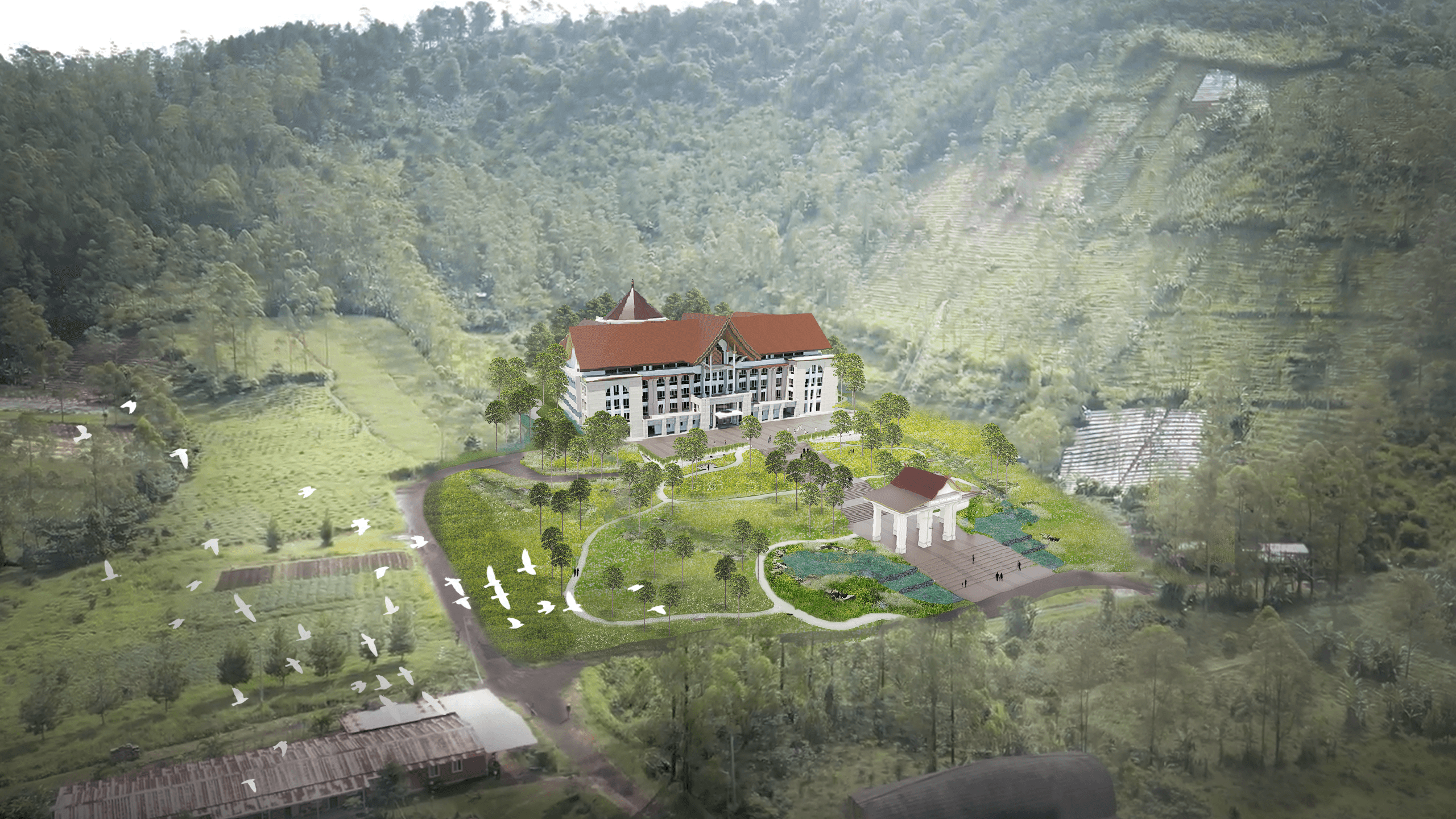 Mandatalam Building is a contemplative cultural retreat shaped by regenerative landscape principles. Responding to steep terrain and tropical climate, the project integrates water, forest, and spatial sequencing to create spaces for exploration, meditation, and reflection, a landscape that giving life back to nature while nurturing all living being in harmony.