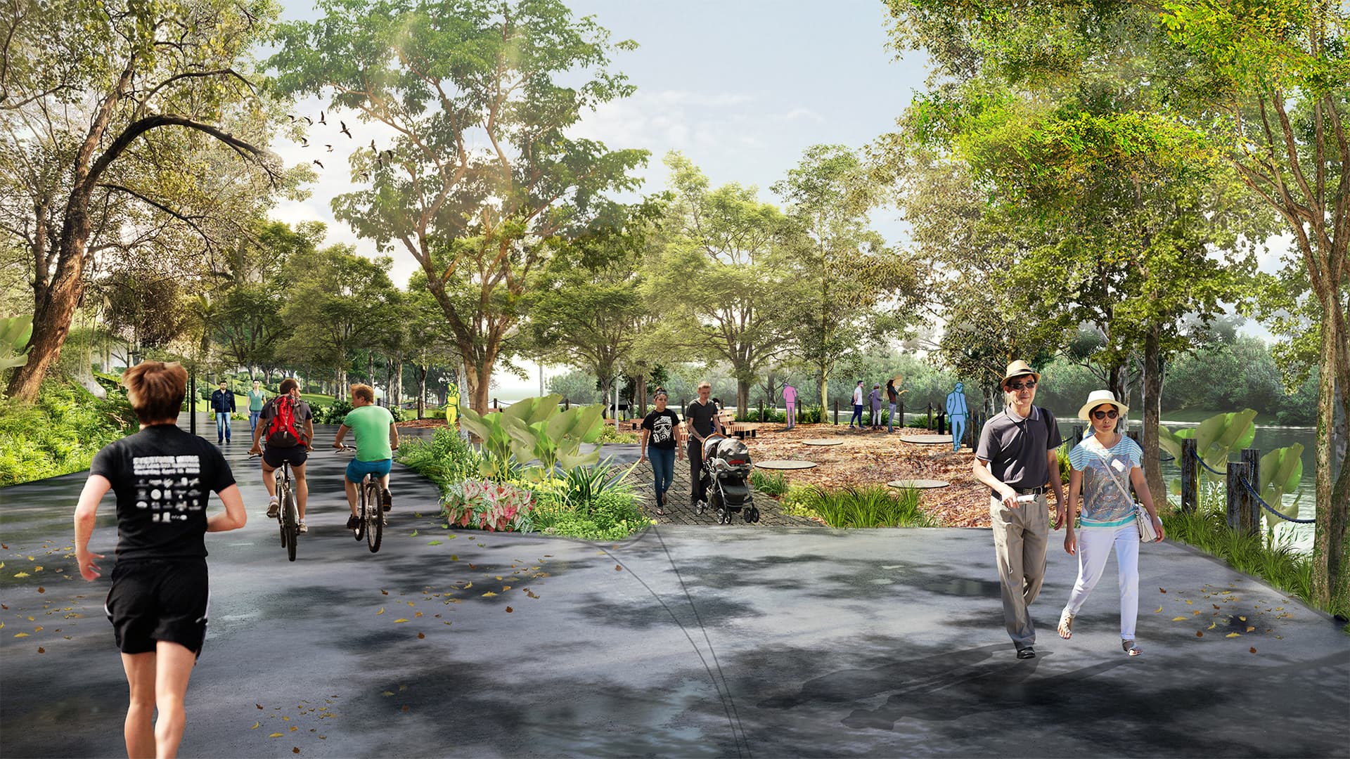 Nava Park Green Belt envisions a slope-sensitive promenade along the Cisadane River. Following natural contours, it preserves trees, restores stability, and introduces distinct walking zones. The design transforms inaccessible terrain into connective civic infrastructure, balancing ecological care with everyday use and framing a resilient riverside experience for BSD.