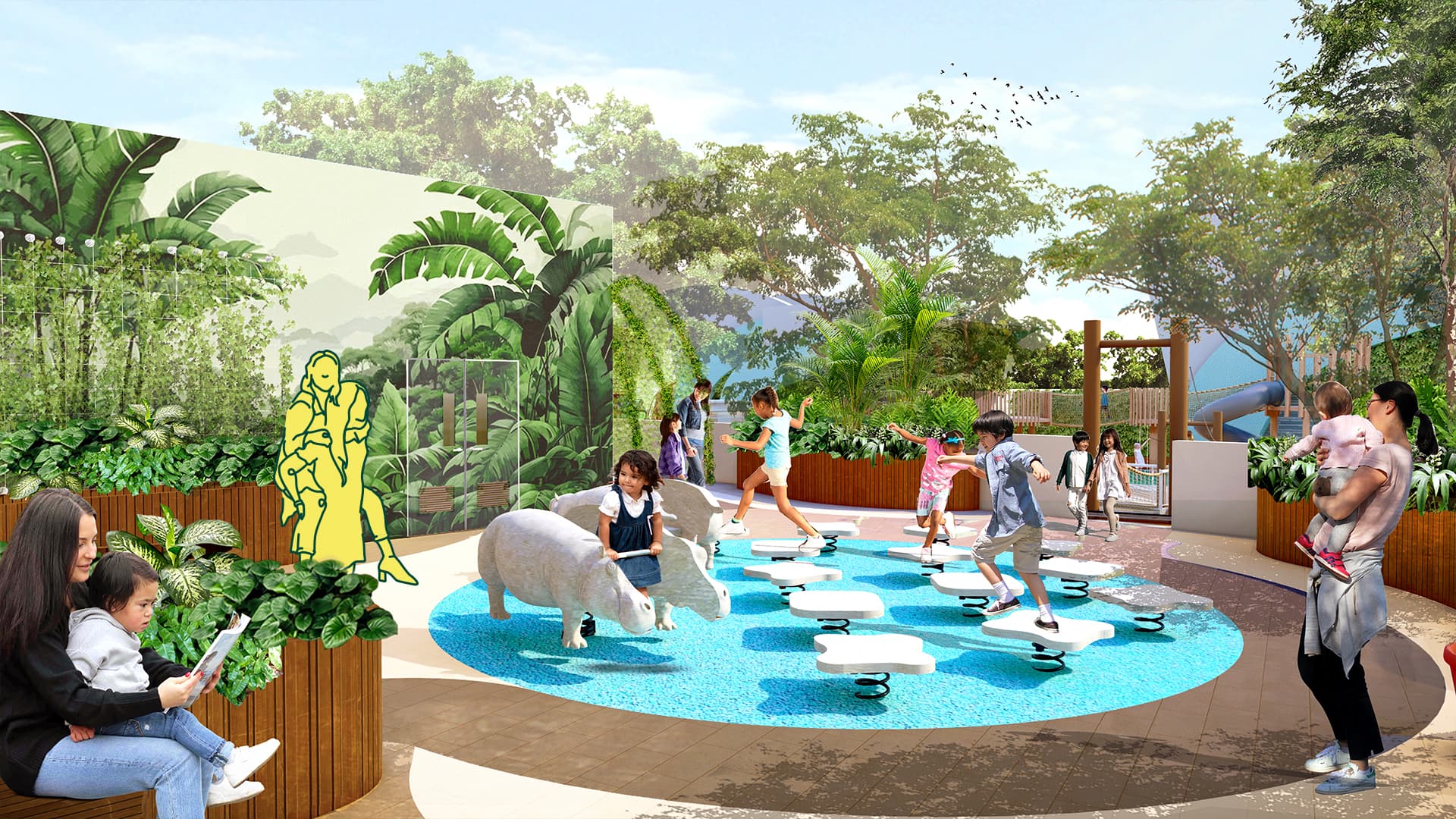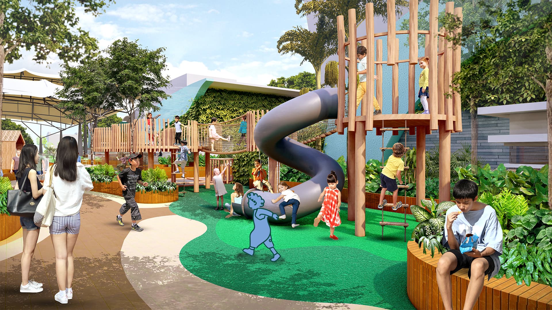 The upper floor is transformed into a dynamic, jungle-themed play and learning area, featuring sensory gardens, obstacle courses, and integrated educational elements. By seamlessly weaving nature into everyday circulation, the project converts the mall environment into an engaging, walkable landscape that actively supports play, exploration, and lasting visitor experiences.