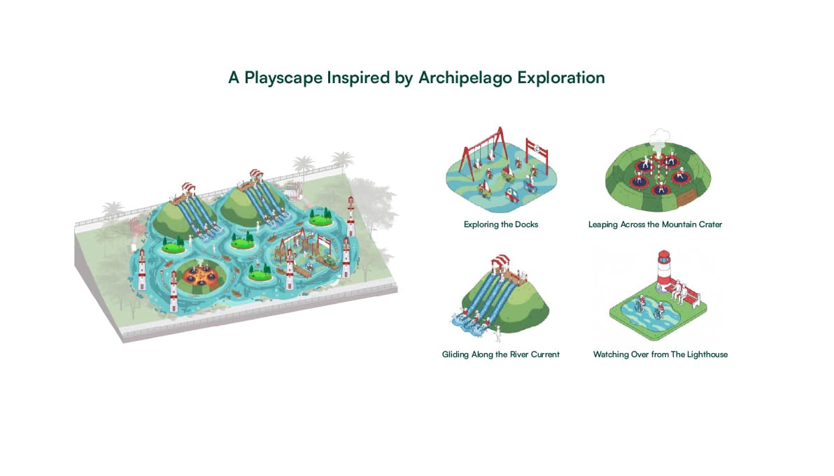 Native planting, thematic gardens, and community facilities bring renewed purpose to mature trees and shaded lawns. Playground developed with idea of archipelago exploration, encourage kids to Through inclusive circulation, Water Sensitive Urban Design strategies, and cultural symbolism, Taman Bendera Pusaka transforming beyond park, it is a place of gathering, learning, and renewal for the city.