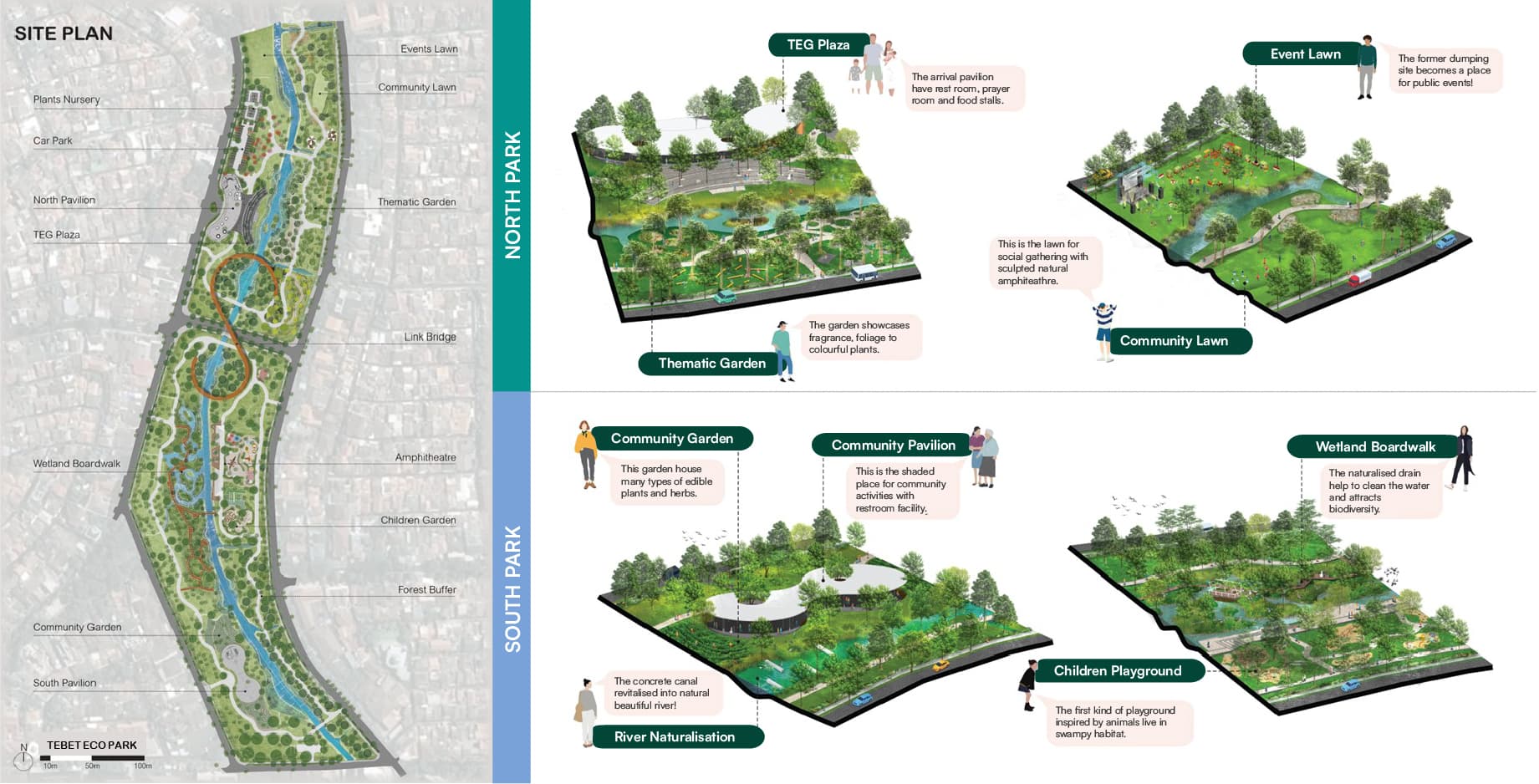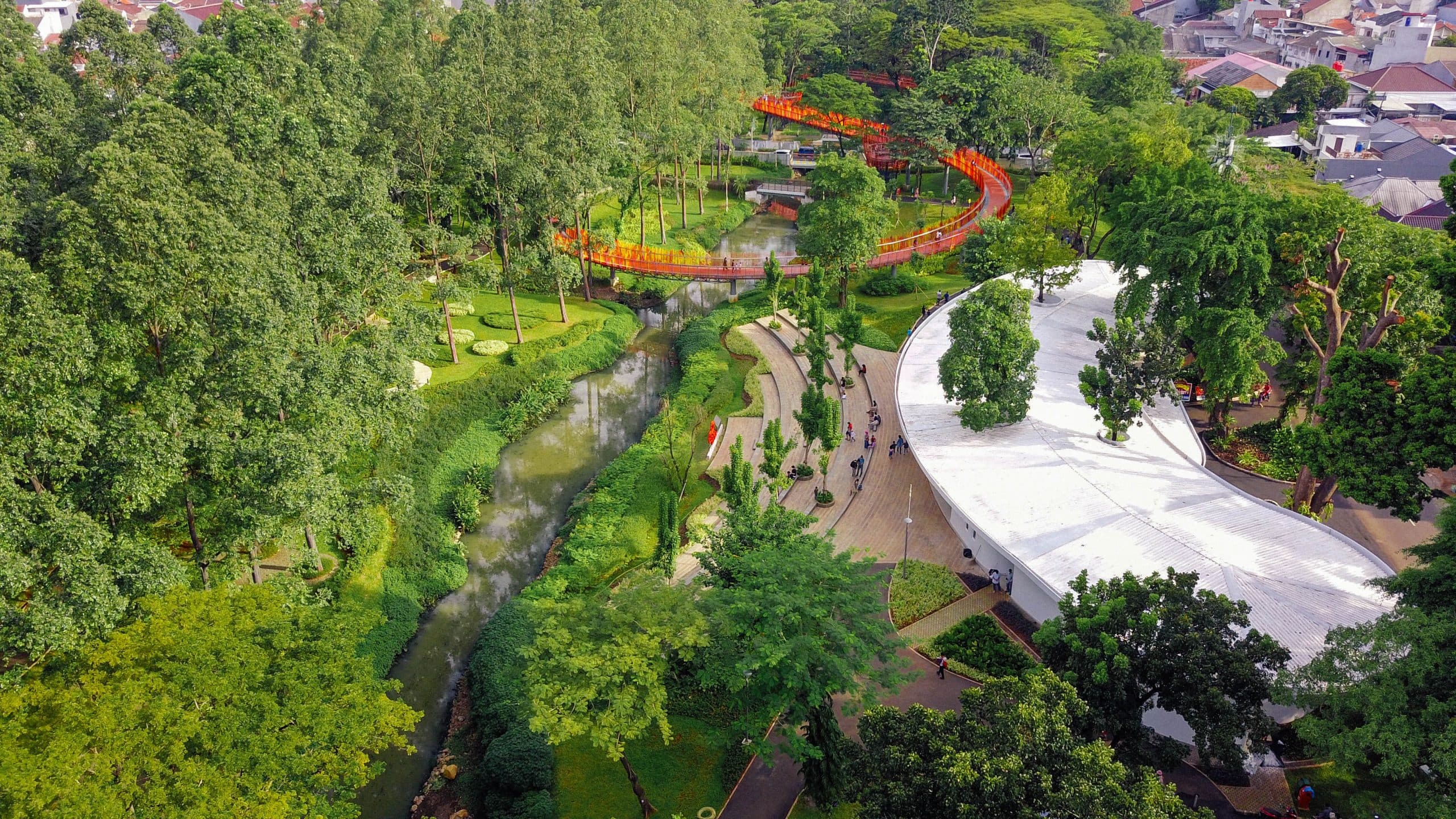 The Tebet Eco Park is a 7.3-hectare pilot public park project, located in South Jakarta in a densely populated area. It focuses on an active restoration of the site’s ecology with tree conservation and planting; reduces the risk of flooding with river re-naturalization; and cultivates an inclusive environment that facilitates access to a wide offering of educational programming and recreational activities, providing maximum benefit for park users and surrounding nature inhabitants.