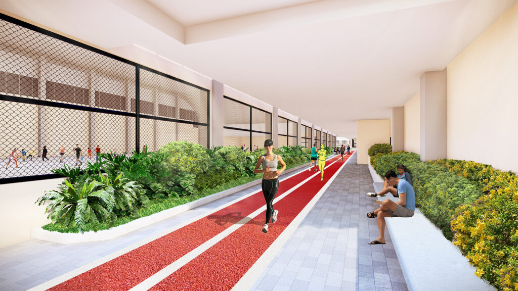 Moving upward, the narrative shifts from Play to Performance. The rooftop is designed as a dedicated Wellness Compound, proving that a mall roof can function as an athletic and restorative destination.